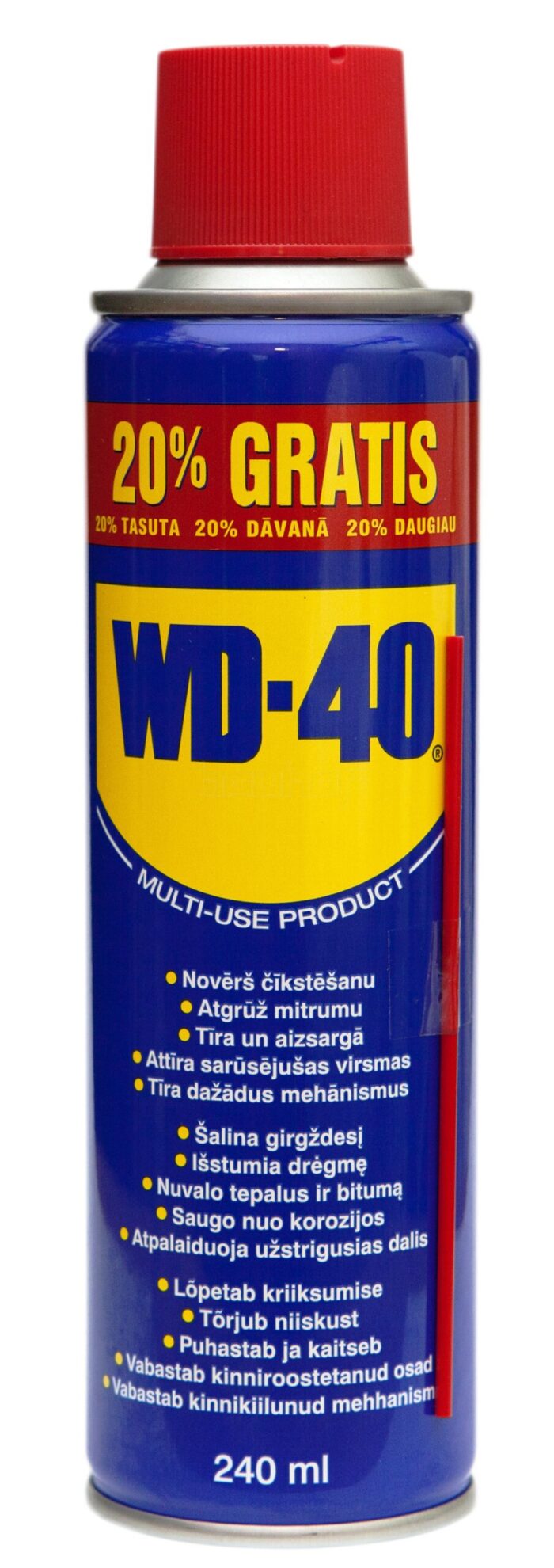 Istiskuje vlagu s metalnih površina električnih i mašinskih spojeva, alata bicikla. . . Oslobađa i podmazuje brave, šarke, točkiće, slavine, upravljače, kablove itd. stvarajući dugotrajan zaštitni sloj protiv rđe i vlage. Otaa mrlje od pastelnih i uljanih boja, katrana, lepka i kamenca